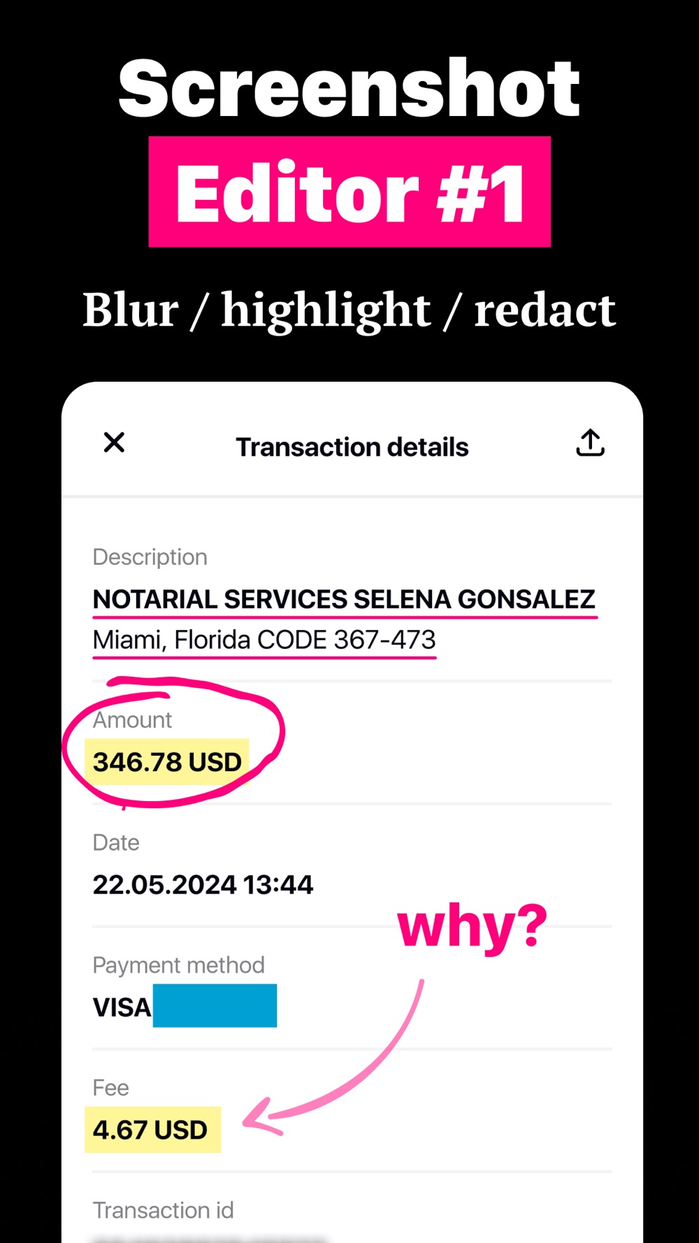 Create and edit your screenshots. Highlight the important and hide the confidential. We added new 7 tools for your screenshots: Redact, Highlight, Underline, Strike, Blur, Blend and Pixel