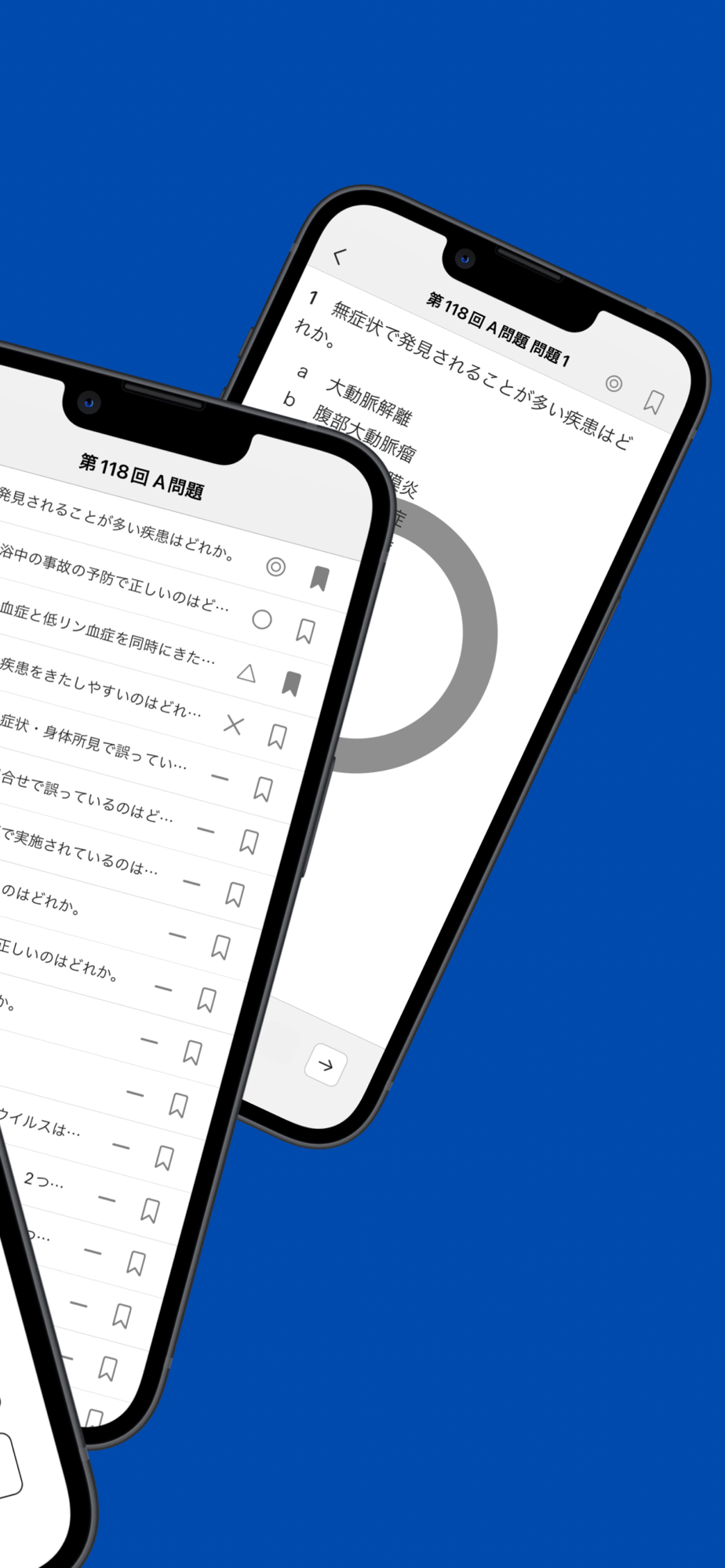 「医師国家試験 過去問題集」は、国試を控える医学生が、スキマ時間を活用して、いつでもどこでも医師国家試験の過去問を解けるアプリです。