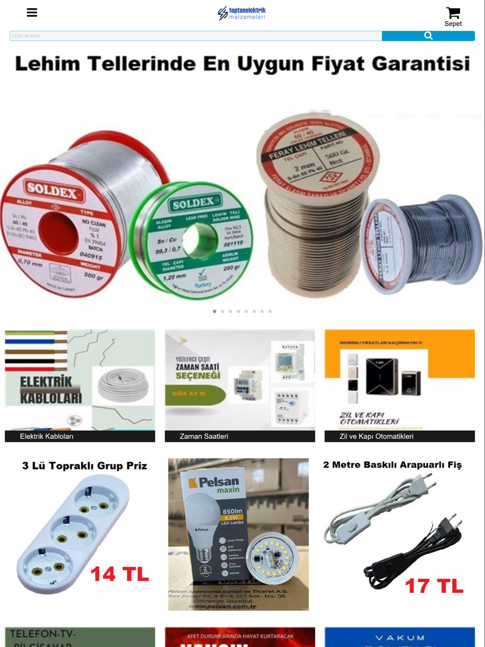 Toptan Elektrik Malzemeleri; Elektrik sektöründe, dünyanın en iyi markalarını en uygun fiyata bünyesinde toplayıp, Türkiyen nin genelindeki bayilerine her türlü toptan elektrik malzemelerini, kablo ve aydınlatma malzemelerin satışını gerçekleştirmektedir.