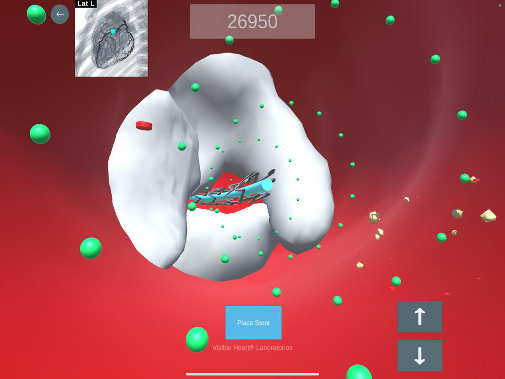 Fly through coronary arteries in immersive augmented reality, clearing plaque and clots to restore healthy blood flow. Test your knowledge with interactive educational questions tailored to your skill level, from patients learning basic heart health to medical students and physicians mastering complex coronary interventions. This engaging AR simulation combines hands-on stent placement training with valuable, targeted cardiac education.