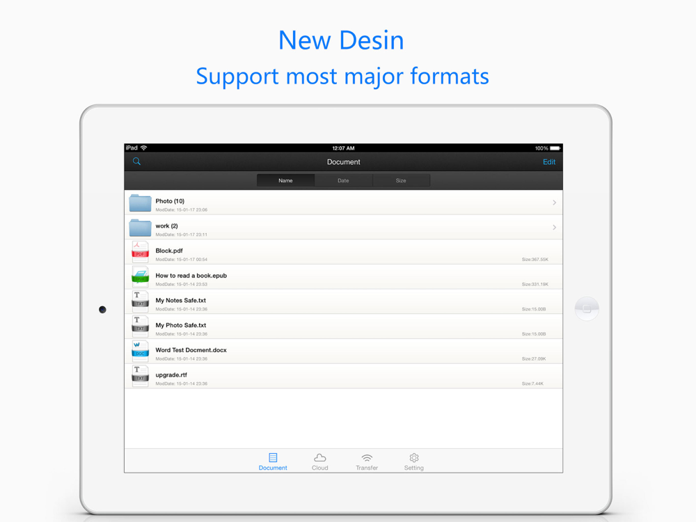 - Document viewer supports Word, Excel, PPT, PDF, iWork, html, txt, rtf, webarchive and so on