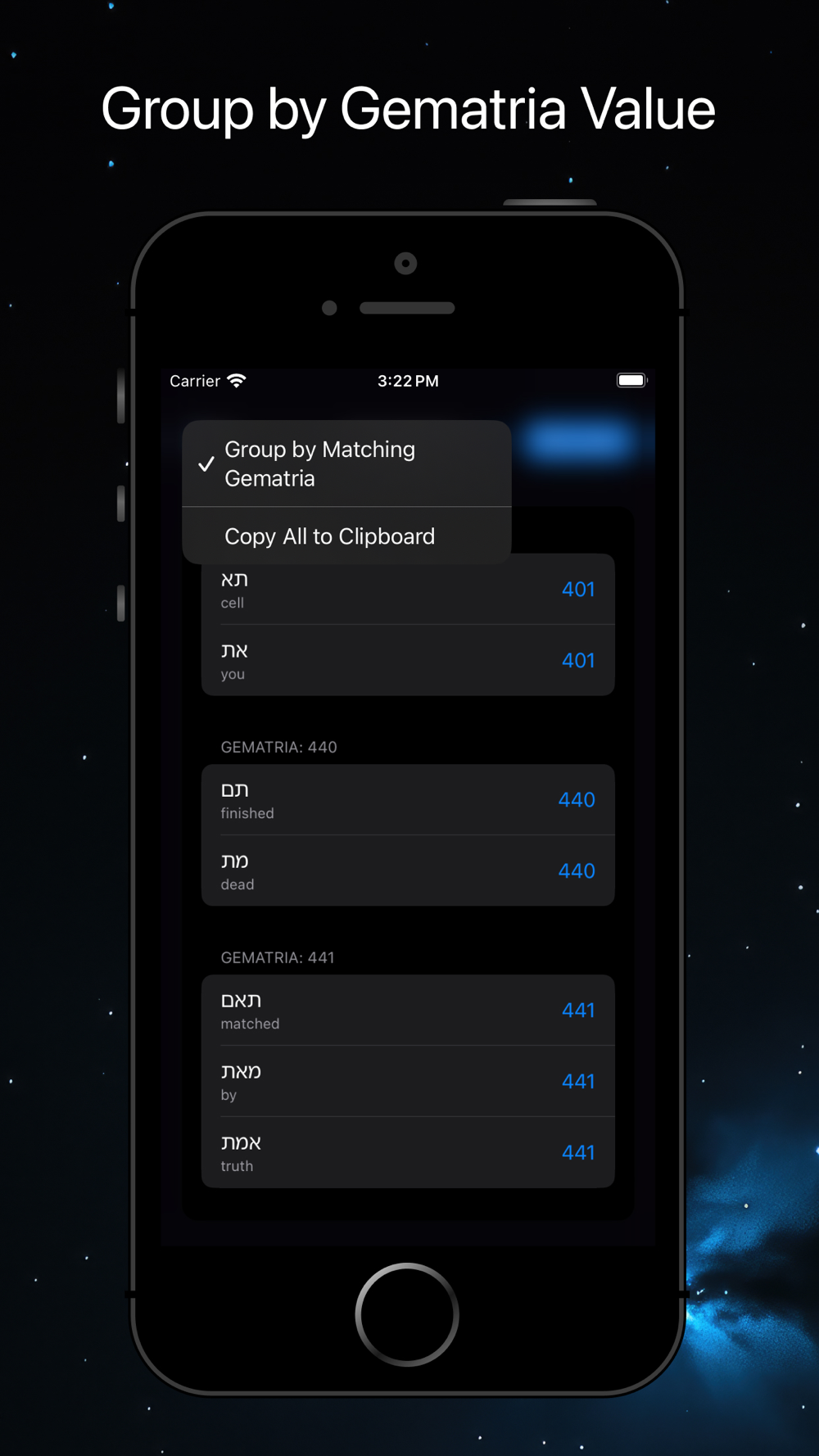 * Group by Gematria: Instantly see which words have matching values among your permutations.