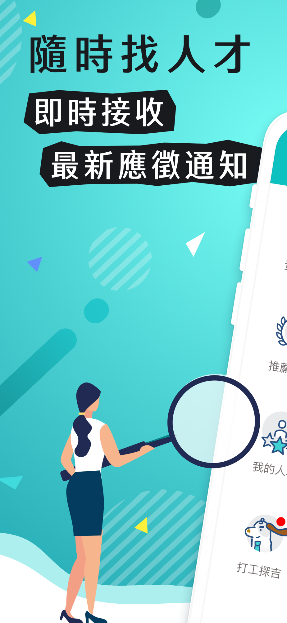 104人才快找APP是專為HR招募設計,讓您運用手機的便利性,隨時找人才,即時接收最新應徵通知,更可透過視訊面談,提升您的招募效率。