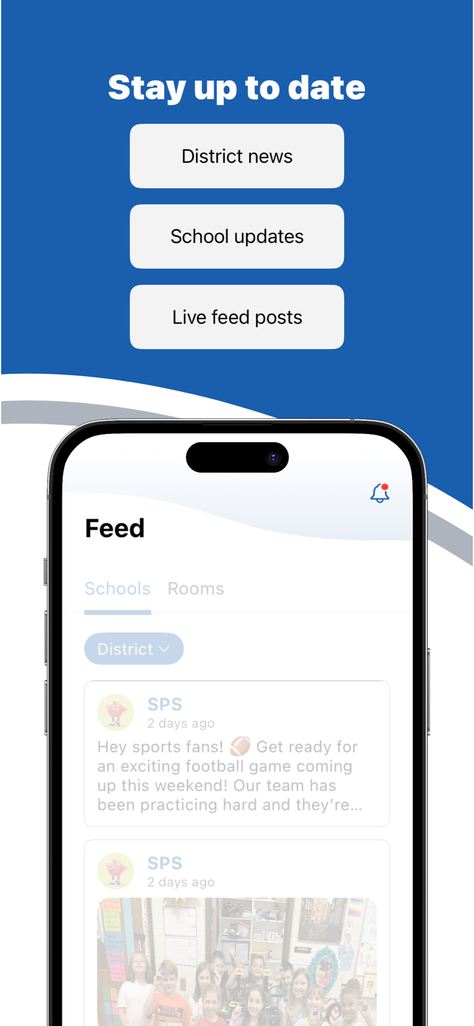 In the Live Feed is where you'll find updates from the administration about what's going on in the district right now. Whether that's celebrating a student's success, or reminding you about an upcoming deadline.