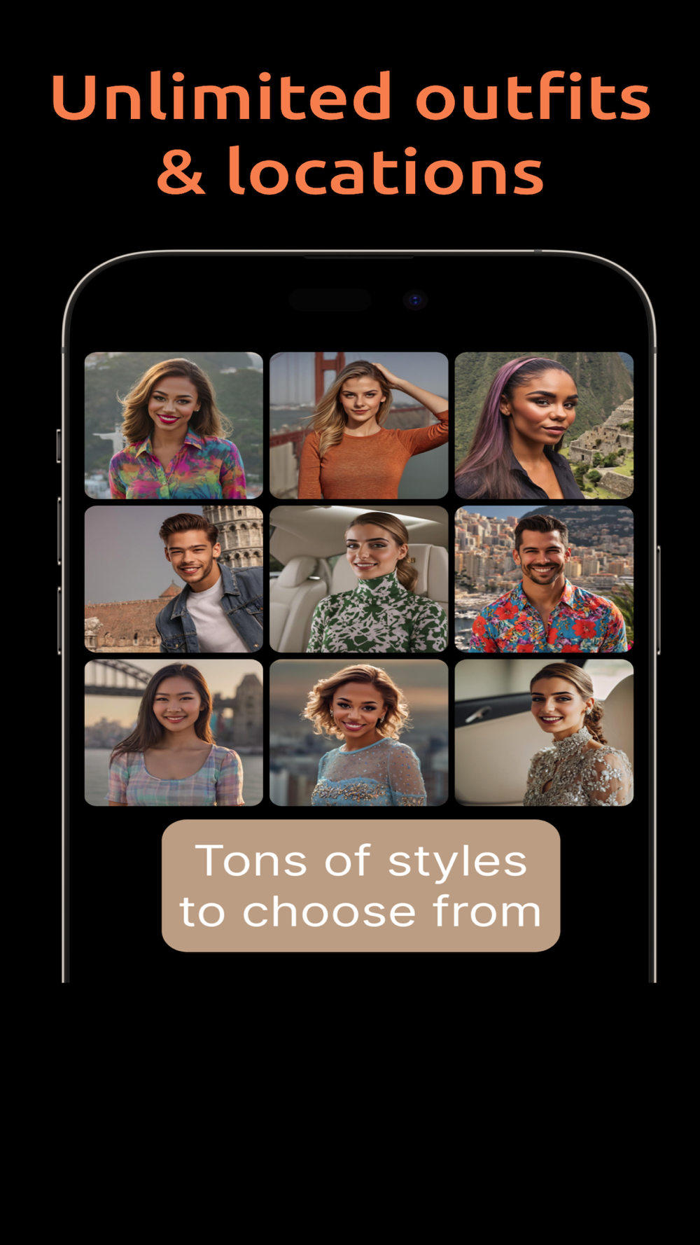 You can choose from a range of styles (outfits and locations). We add new styles often.