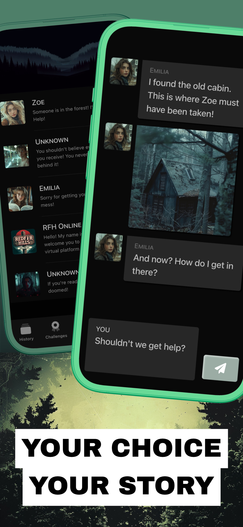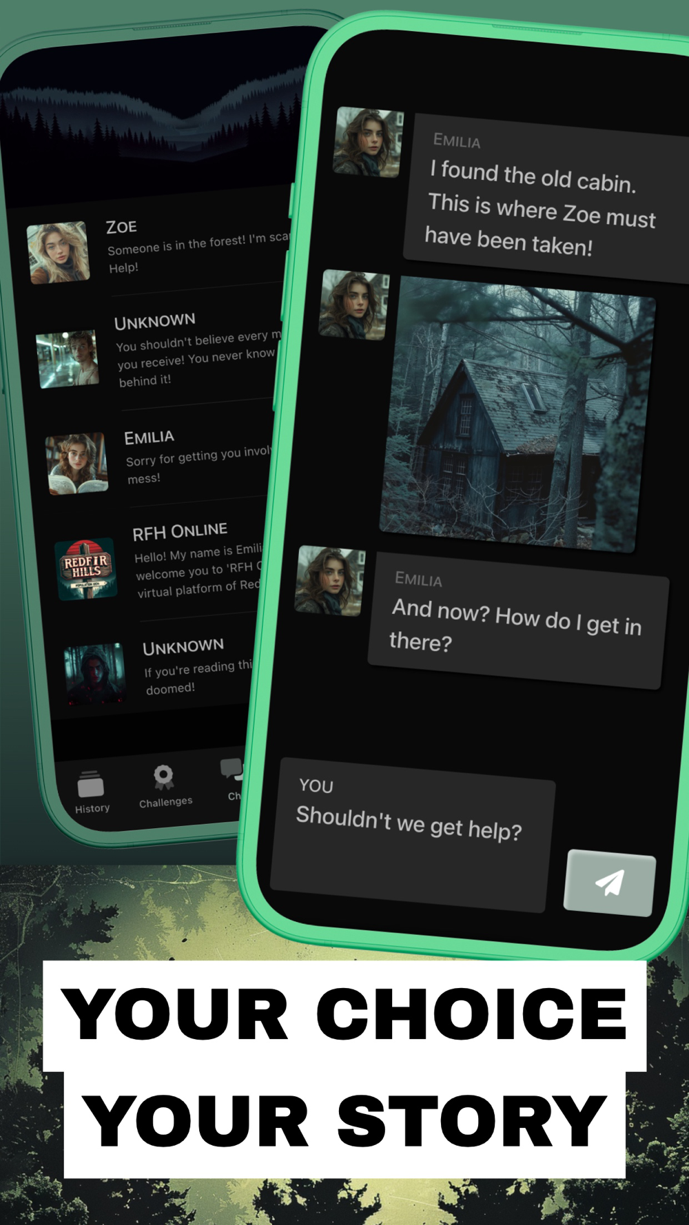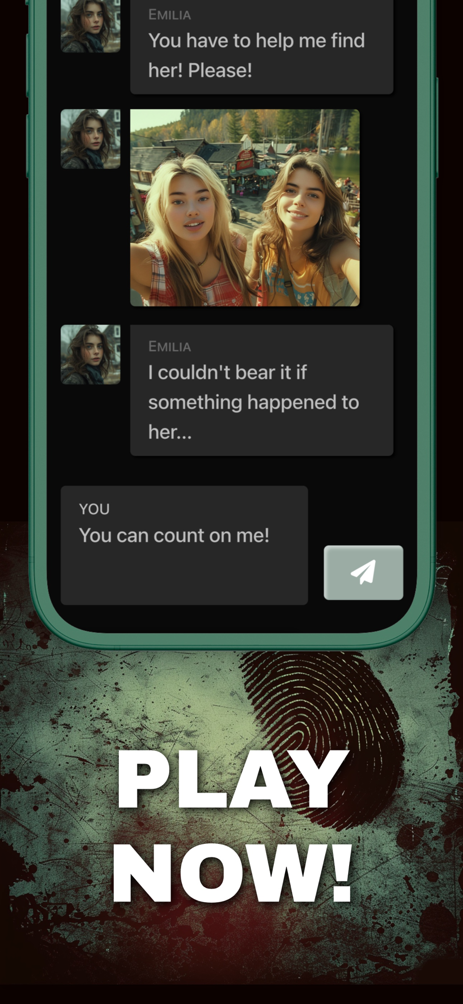 Zoe has been missing for 3 days. Has the Bluepine killer struck again? Her friend Emilia is about to lose hope when YOU suddenly appear in her chat. At this moment, she has no idea what role you will play in this gripping criminal case.