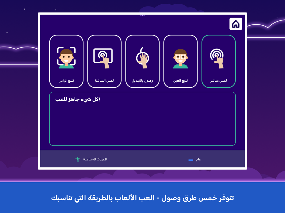 الوصول إلى الألعاب بطرق وصولية مختلفة. توفير تجربة تعلم سلسة مع خيار دعم اللغتين العربية والإنجليزية.