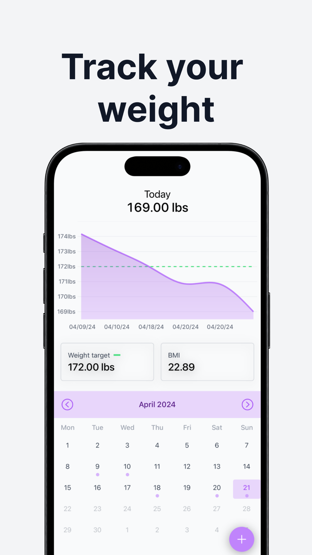 - Easy Weight Tracking: Enter your weights regularly and follow your trend on clear graphs.