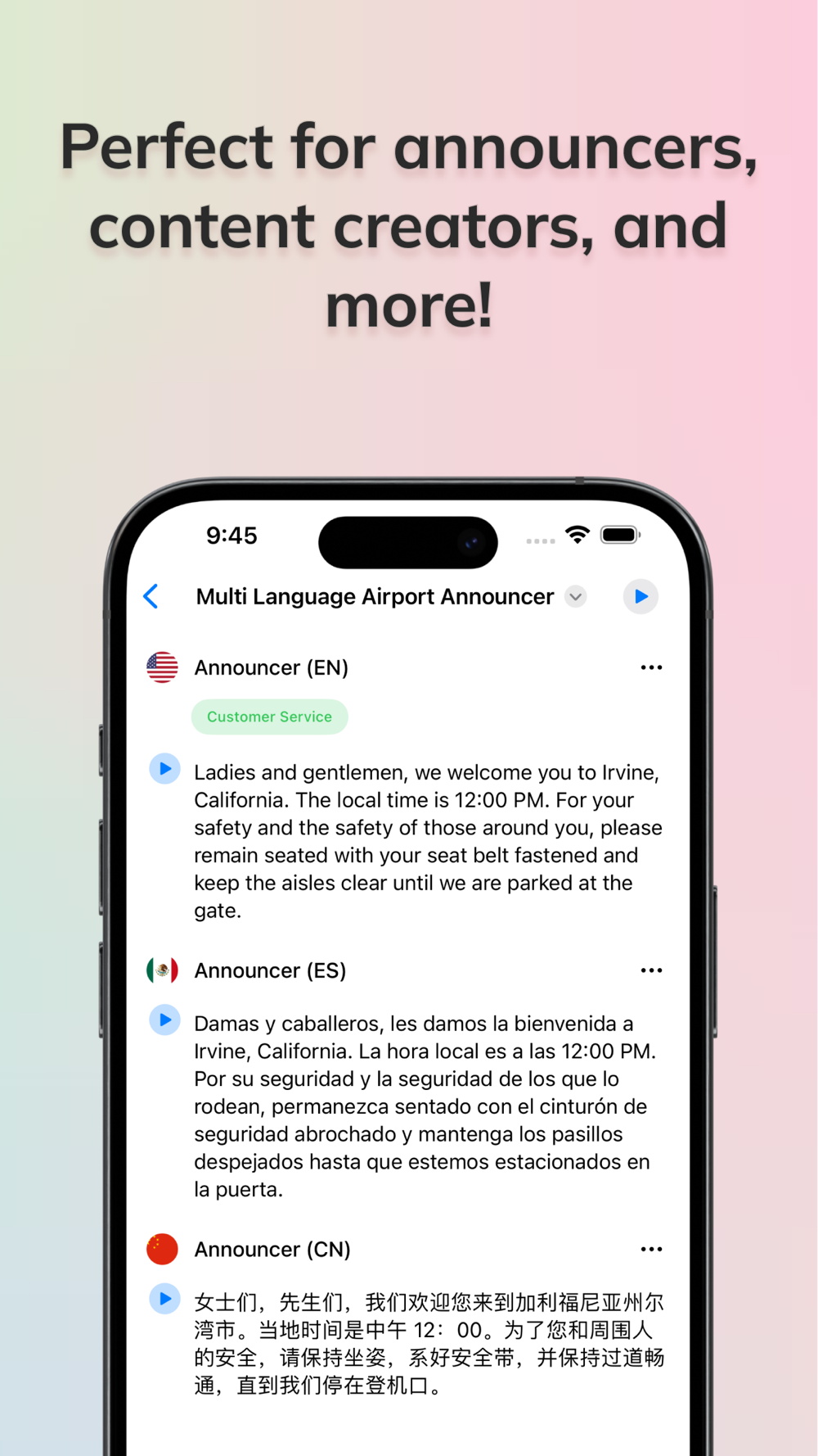 Whether you're a content creator, language learner, or someone looking to enhance accessibility, AI Voice Studio revolutionizes the way you interact with text. Download now and embark on a journey of limitless audio possibilities!