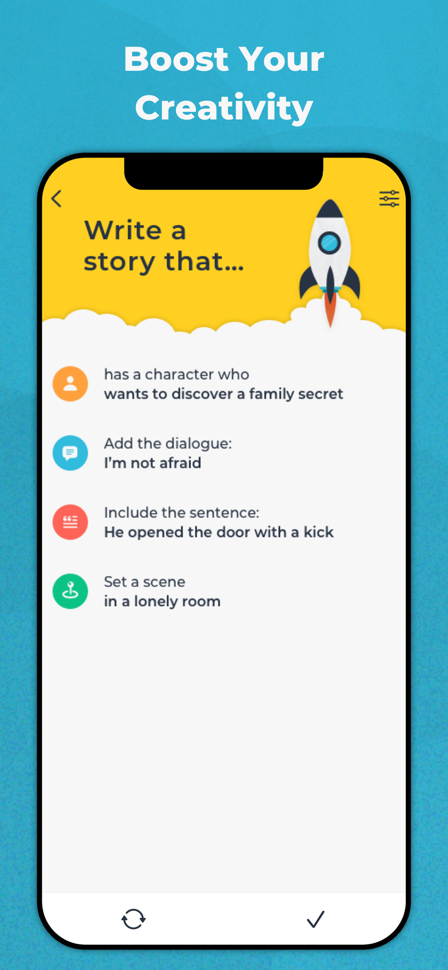 With Writing Challenge, you will brainstorm new and fresh ideas and embrace freewriting in the funniest way ever.