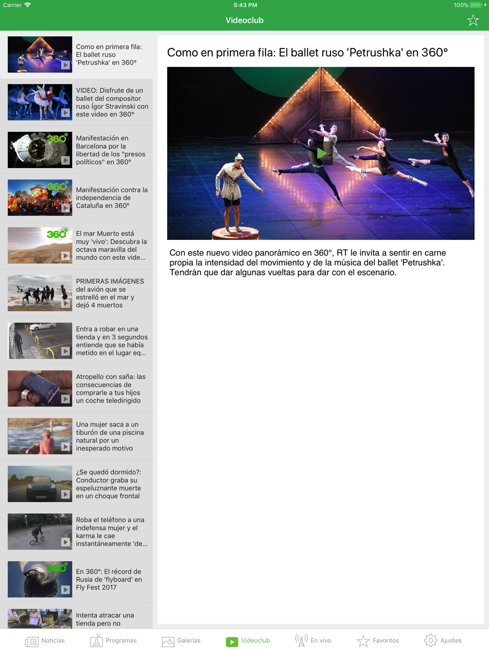 En 2009 RT empieza a transmitir sus programas en español 24 horas al día y 7 días a la semana. Los espectadores de Nueva York y Miami, Los Angeles y México, Buenos Aires y Madrid siguen los noticieros de RT cuando más les convenga.