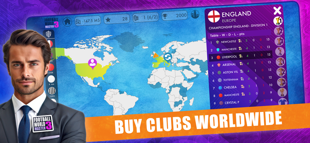 Lead your clubs to the top of world football or sell them and pocket the jackpot.