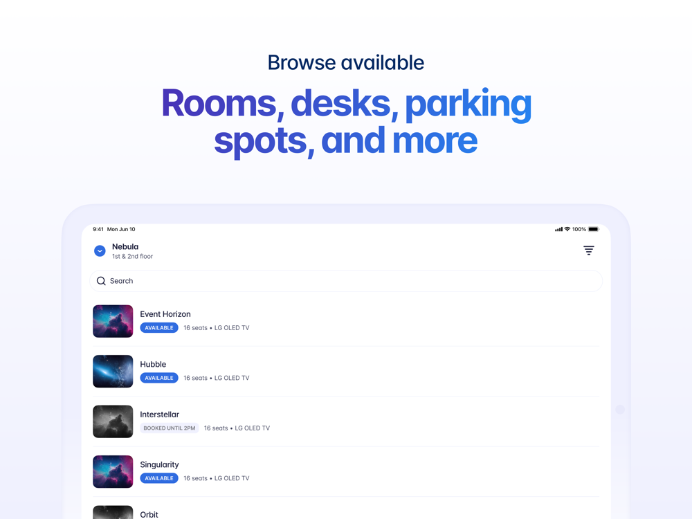 Streamline your office into a fully flexible workplace by managing desk bookings, meeting room scheduling, parking spot reservations, and shared resource allocation—all in one convenient platform.