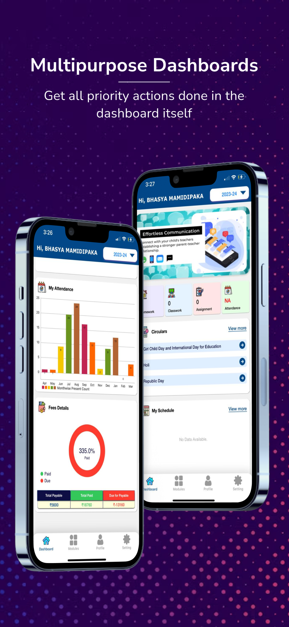 This App is an exclusive online platform for School Staff, Parents, and Students of School. It is a complete Institutional Process Automation engine that promotes School-Student collaborative learning and real-time data handling.