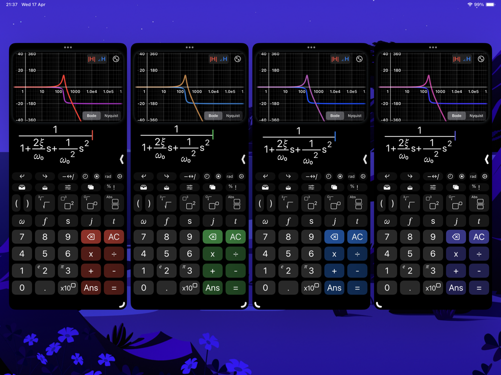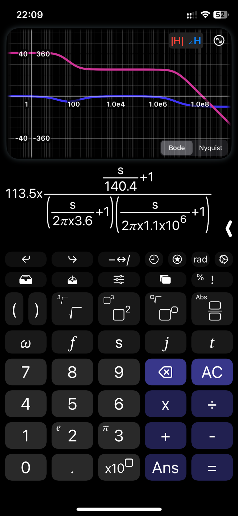 This is not a standard scientific calculator, it is optimized to evaluate Bode plots and Nyquist diagrams.