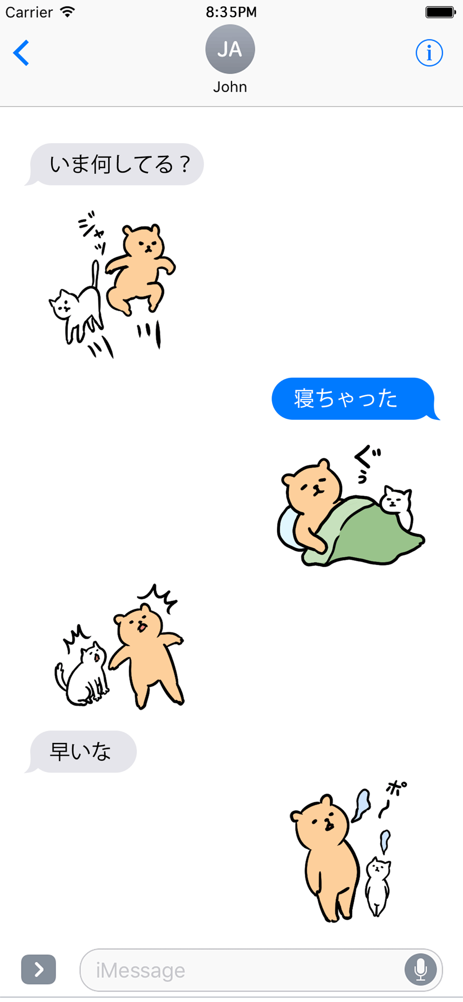 Enjoy Everyday life with Bear and Cat. You can express your feeling with cute Bear and cat!