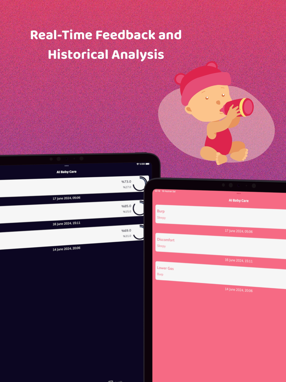Never second-guess your baby's needs again with our AI-powered cry translator. Using advanced algorithms, AI BabyCare analyzes your baby's cries to accurately determine their underlying needs, whether it's hunger, discomfort, or fatigue. Gain deeper insights into your baby's well-being and respond with confidence.