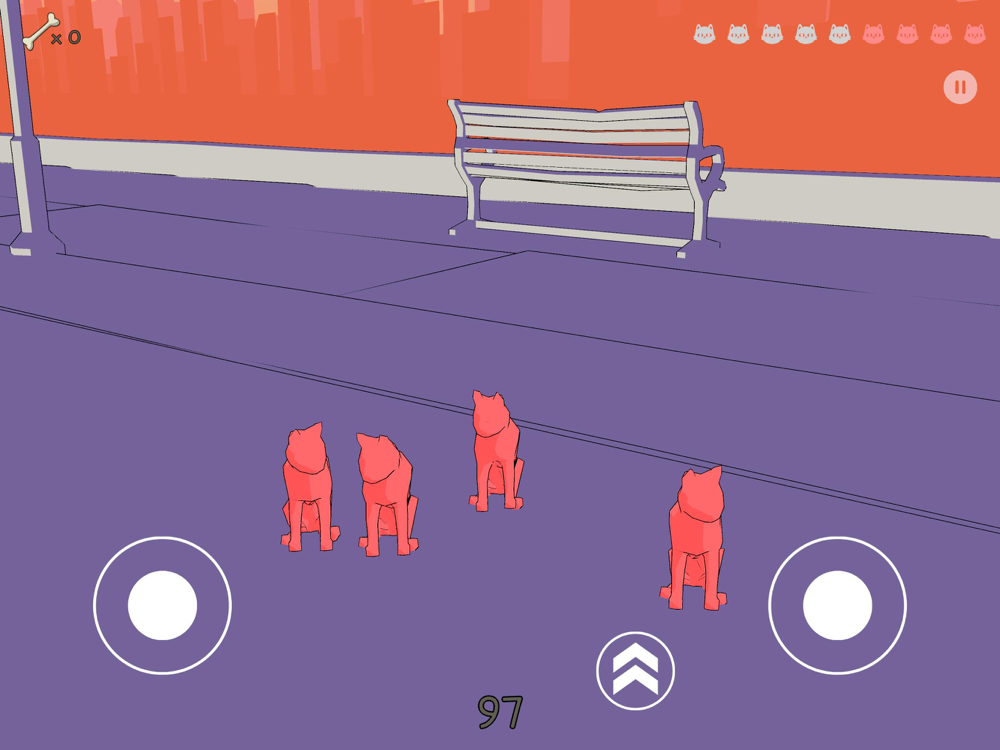 Avoid flying ships and waiting geese that may chase you while trying to find the cats. Flying ships may snatch the cats you are after, making it harder for you to retrieve them. If you collide with geese, your screen will be covered in feathers and you may lose the game. When you find bones and give them to dogs, they will find a cat for you.