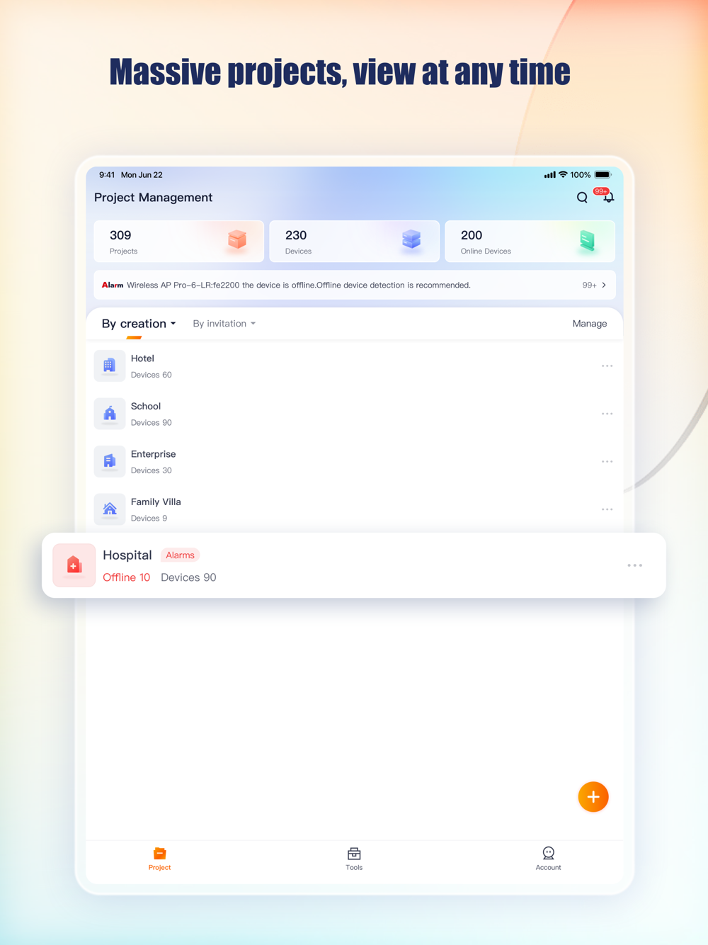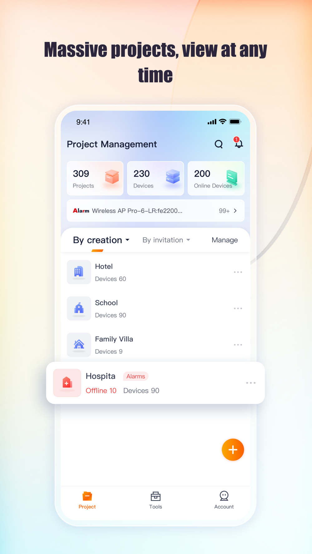 Tenda CloudFi App is a tool launched by Tenda that can remotely manage and operate Tenda network devices. You can manage network projects and devices in the projects anytime and anywhere, view device operating status and alarm logs, and provide a convenient way for network management and operation and maintenance.
