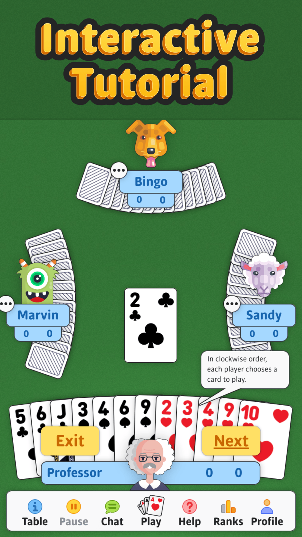 Classic Hearts card game • Solo and Multiplayer • Smart bots • Thousands of people to play with • Interactive tutorial • Free and no signup required!