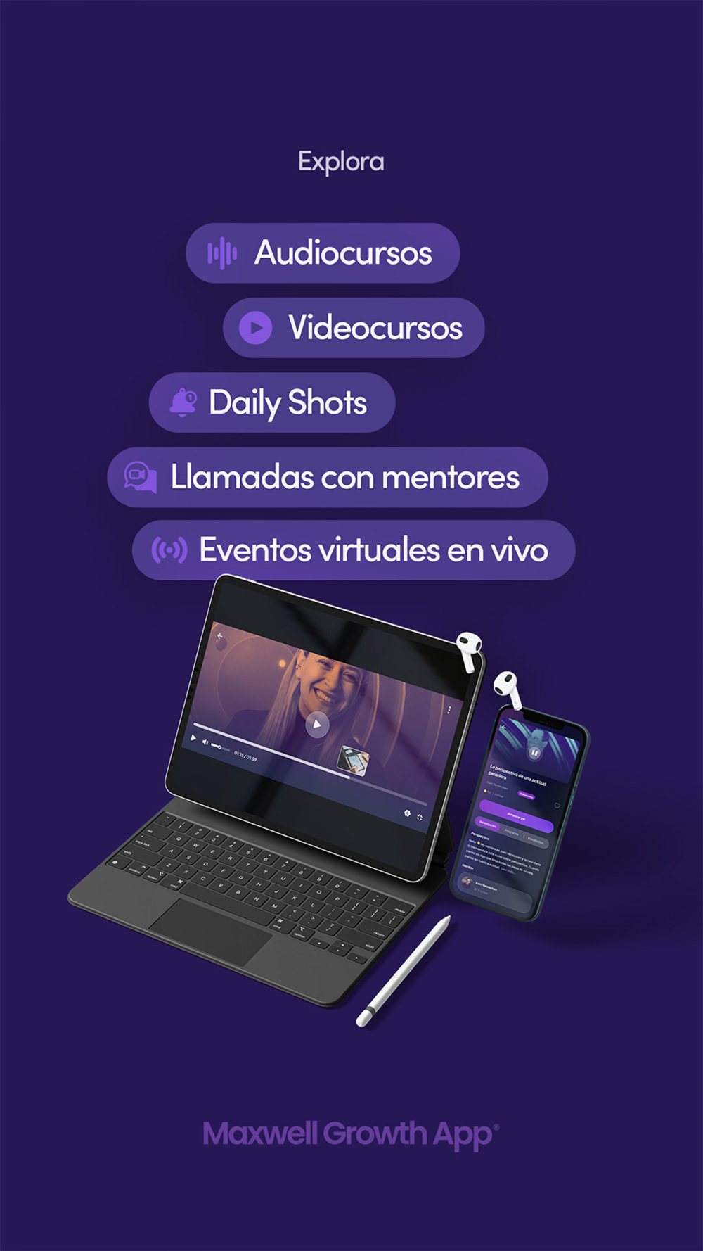 La Maxwell Growth App es la plataforma diseñada para ayudarte a crecer y ganar en todas las áreas de la vida. Más que una simple herramienta de aprendizaje, es un compañero en el viaje hacia el crecimiento personal y profesional. Recibe por medio de videocursos y audiocursos toda la información que necesitas para ganar en las áreas fundamentales de la vida adulta pues aunque la vida adulta no viene con manual, la GrowthApp es la compañía que necesitas para encontrar el equilibrio y construir tu camino al éxito. ¡Descarga ahora y transforma tu vida adulta!