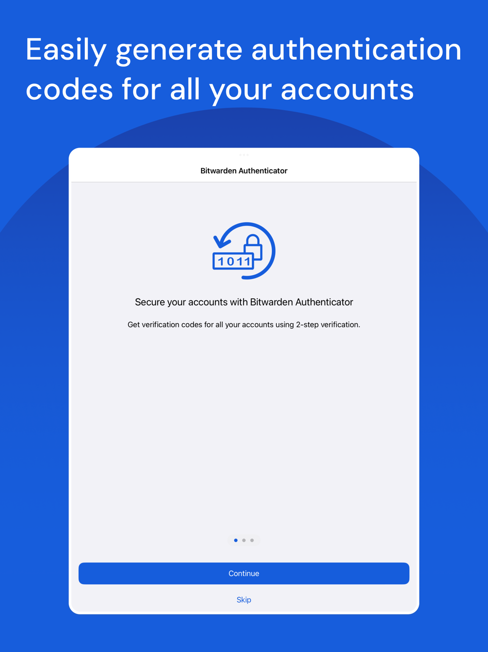 New from Bitwarden, provider of the password manager trusted by millions, Bitwarden Authenticator generates verification codes for two-factor authentication, ensuring your identity is verified when you log into accounts. Using industry-standards, Bitwarden Authenticator supports any website or application that uses TOTP.