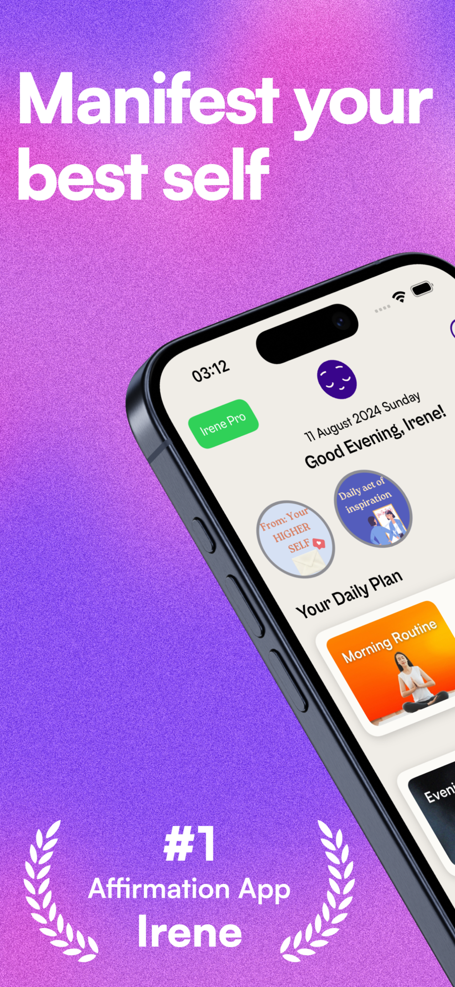 Download Irene now and take the first step towards manifesting your best self. Remember, every day is an opportunity for growth and self-discovery with Irene by your side.