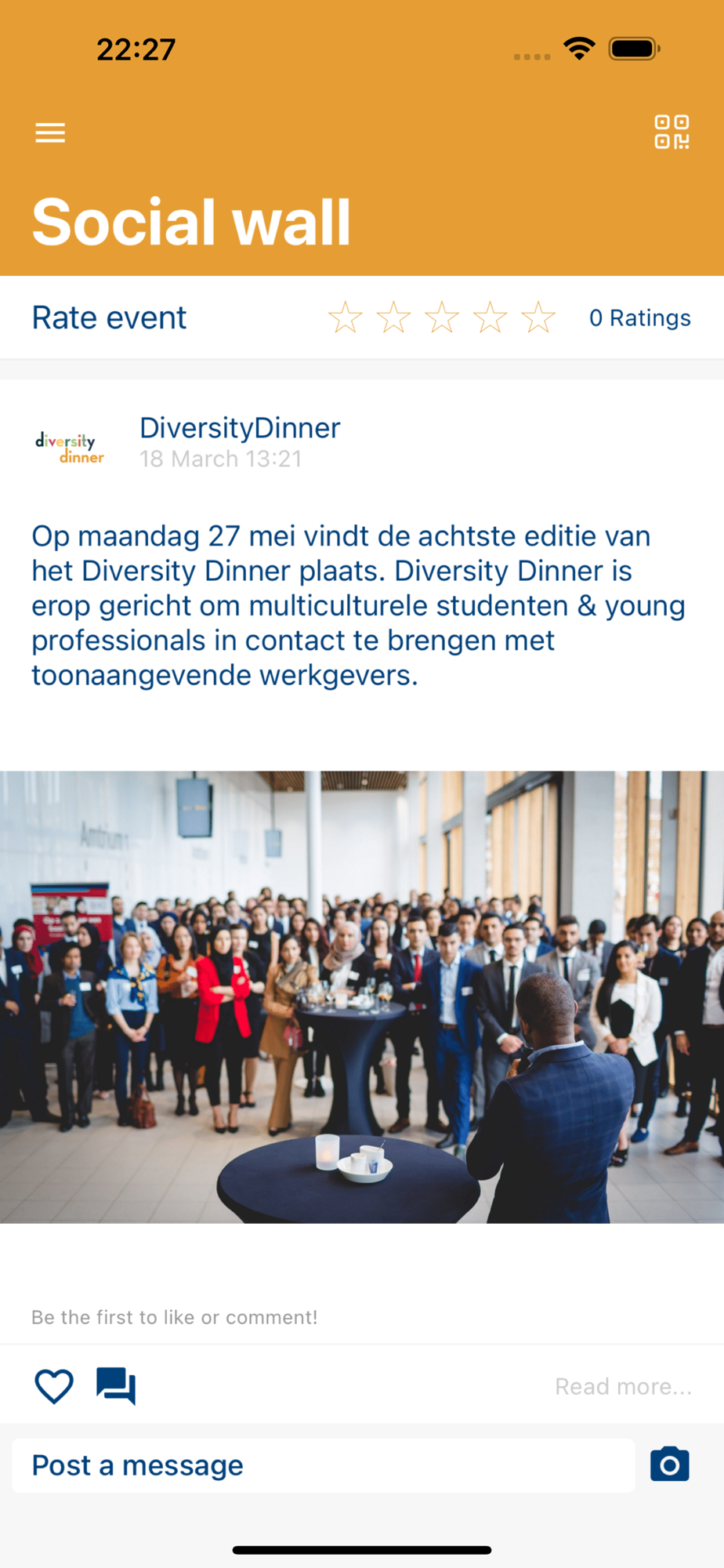 Welkom bij de Diversity Dinner app voor al je belangrijke informatie, entreebewijs, plattegrond en programma. Volg het spoor naar het leukste diner van het jaar! Het Diversity Dinner, op maandag 27 mei, brengt multicultureel talent en meer dan 30 topwerkgevers samen voor de perfecte match.