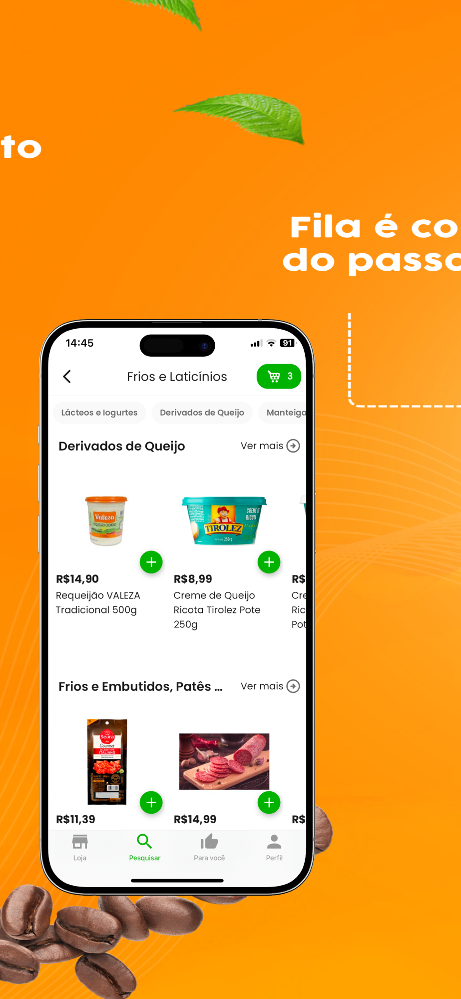 - SEM FILAS: Opte por pegar suas compras já feitas no próprio Mercado ou para elas serem entregues na sua casa.