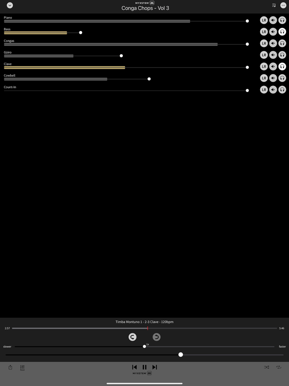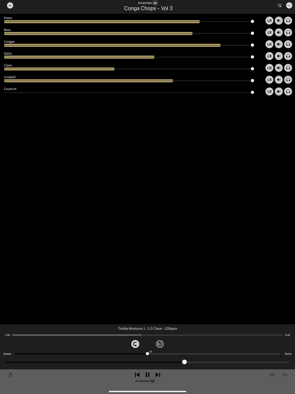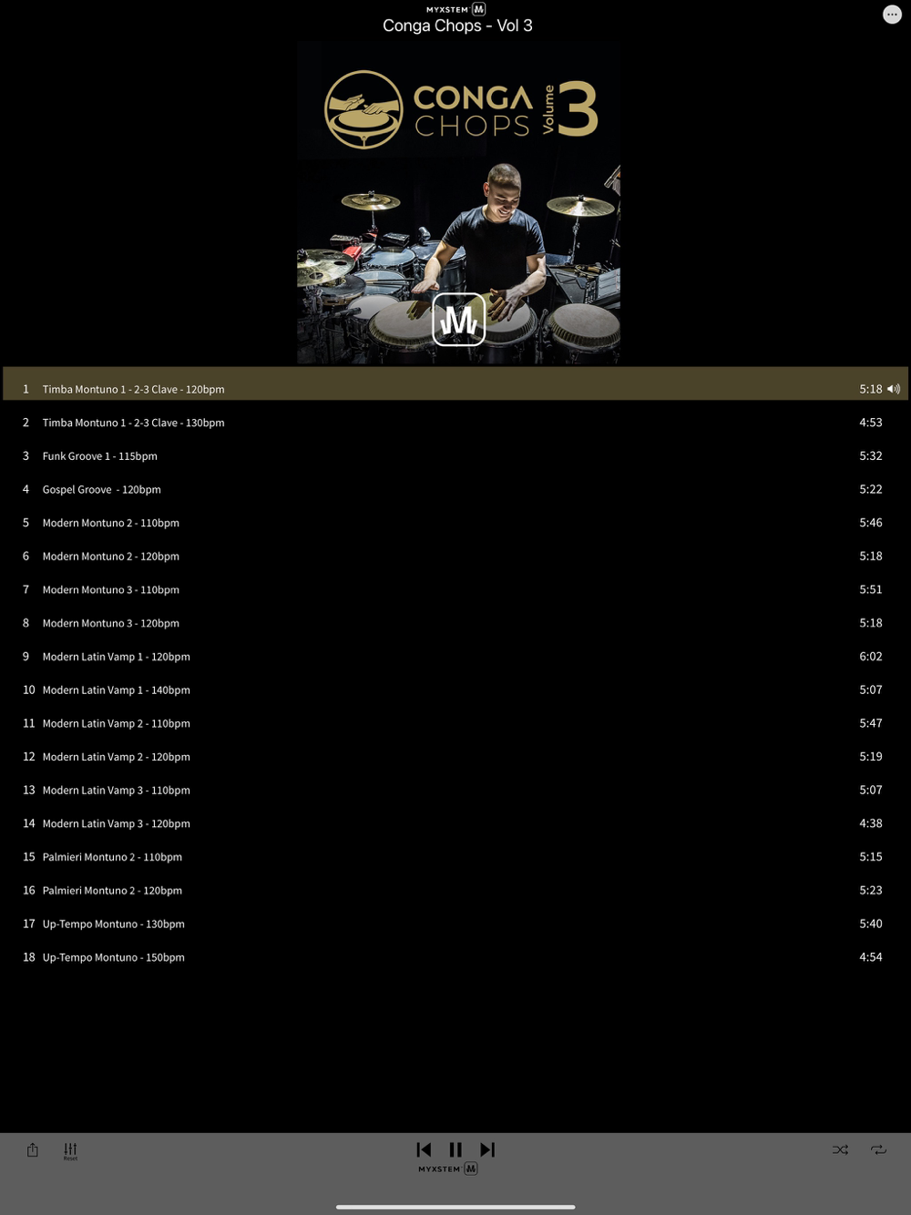 ‘Conga Chops Practice Loops - Vol 3' is a MYXSTEM app release, allowing users to completely control the listening experience. The app features mute, solo, pan and fade capabilities for each individual instrument stem, along with tempo control and looping. By adjusting each stem, users can build the perfect mix to play and study along with, an ideal practice tool for all experience levels. This app also includes PDF transcriptions of all of the percussion instruments you’re hearing on the each loop. Volume 2 includes 15 exclusive Practice Loops from CongaChops.com, featuring Grammy Winning musicians. Please see below for the full track listing.