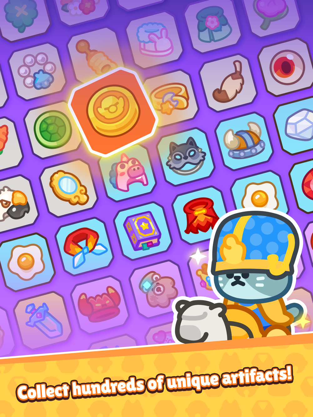 Collect various artifacts with unique abilities, and experience the joy of collecting and watching your feline friends grow stronger!