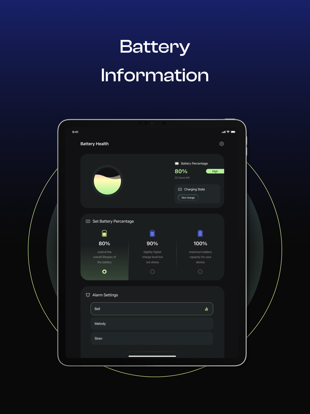 Multi-Level Alerts: Set alarms for battery levels at 80%, 90%, and 100%.