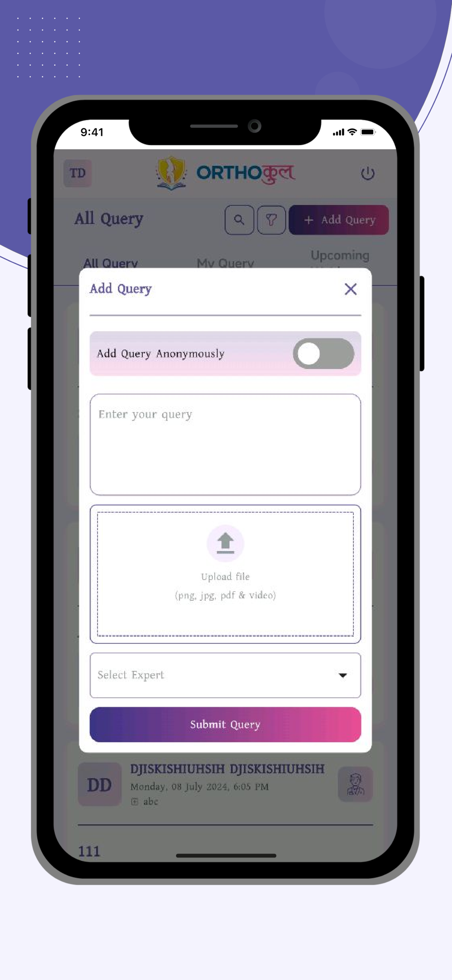 Effortlessly communicate with users by viewing and responding to their orthopedic queries. Receive notifications for new queries and stay connected with users through our secure messaging system.