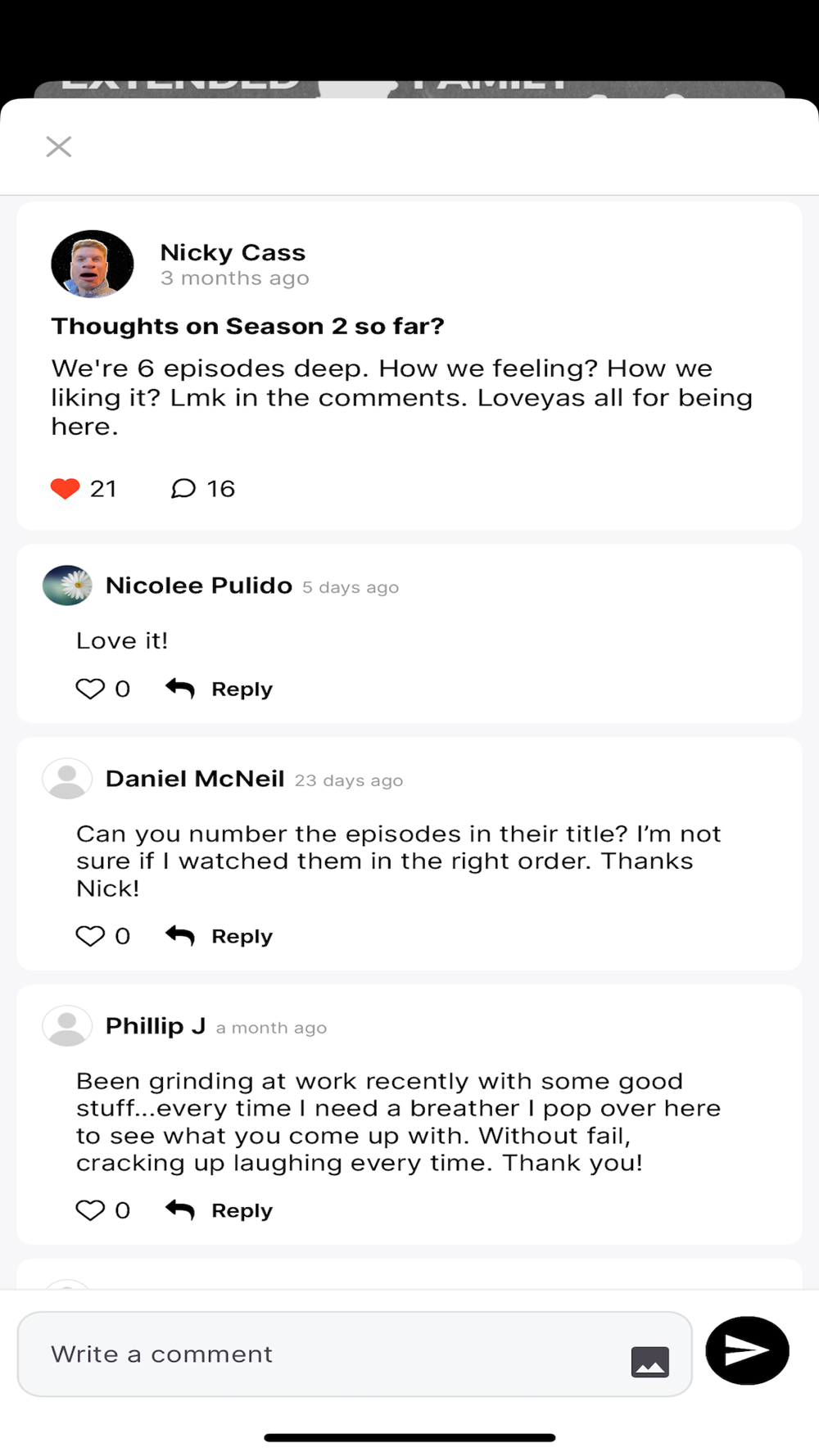 Welcome to the Extended Family, Your go to place for all exclusive Nicky Cass content. In the Extended Family you'll get never before seen Nicky Cass media + exclusive character skits. Download the app today and prepare for endless laughs.