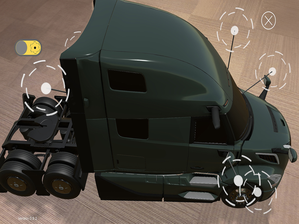 Immerse yourself in the world of the all-new Volvo VNL, even when the actual truck is out of reach. Using a detailed scale model, our app employs Augmented Reality to highlight key features, bringing the details directly to your phone's viewfinder as you walk around the model. And when a scale model is not available, you can explore the exterior and interior of the truck by projecting them into your own environment using your phone’s camera.
