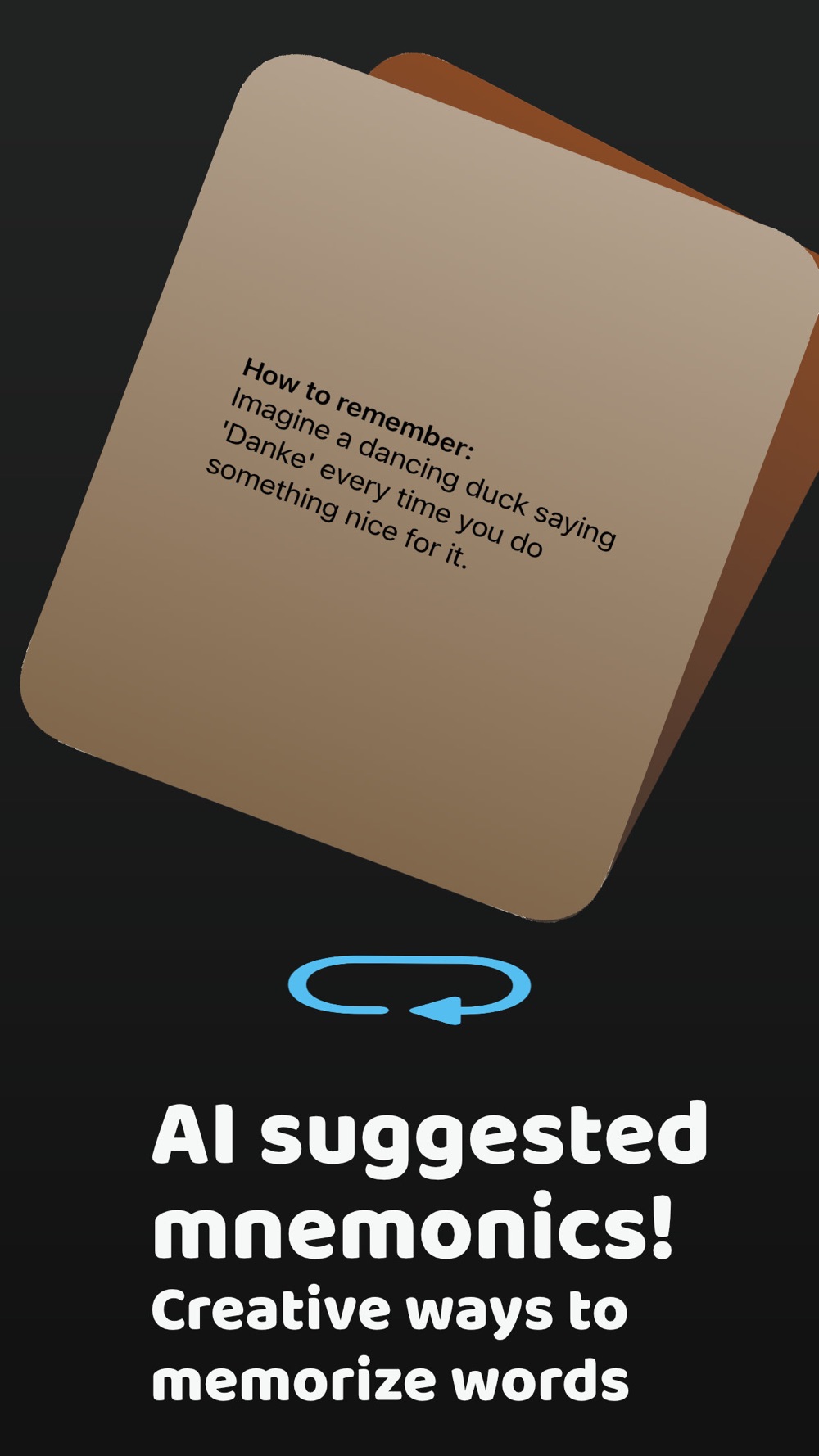 Tap to flip the card and see a suggestion on how to remember the word