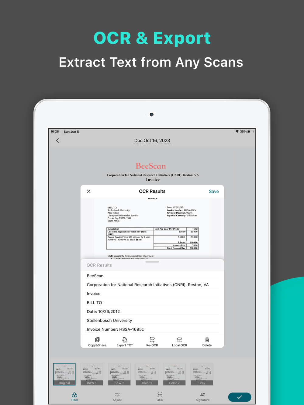 - Rotate, Crop and Adjust filter to get high quality scans.