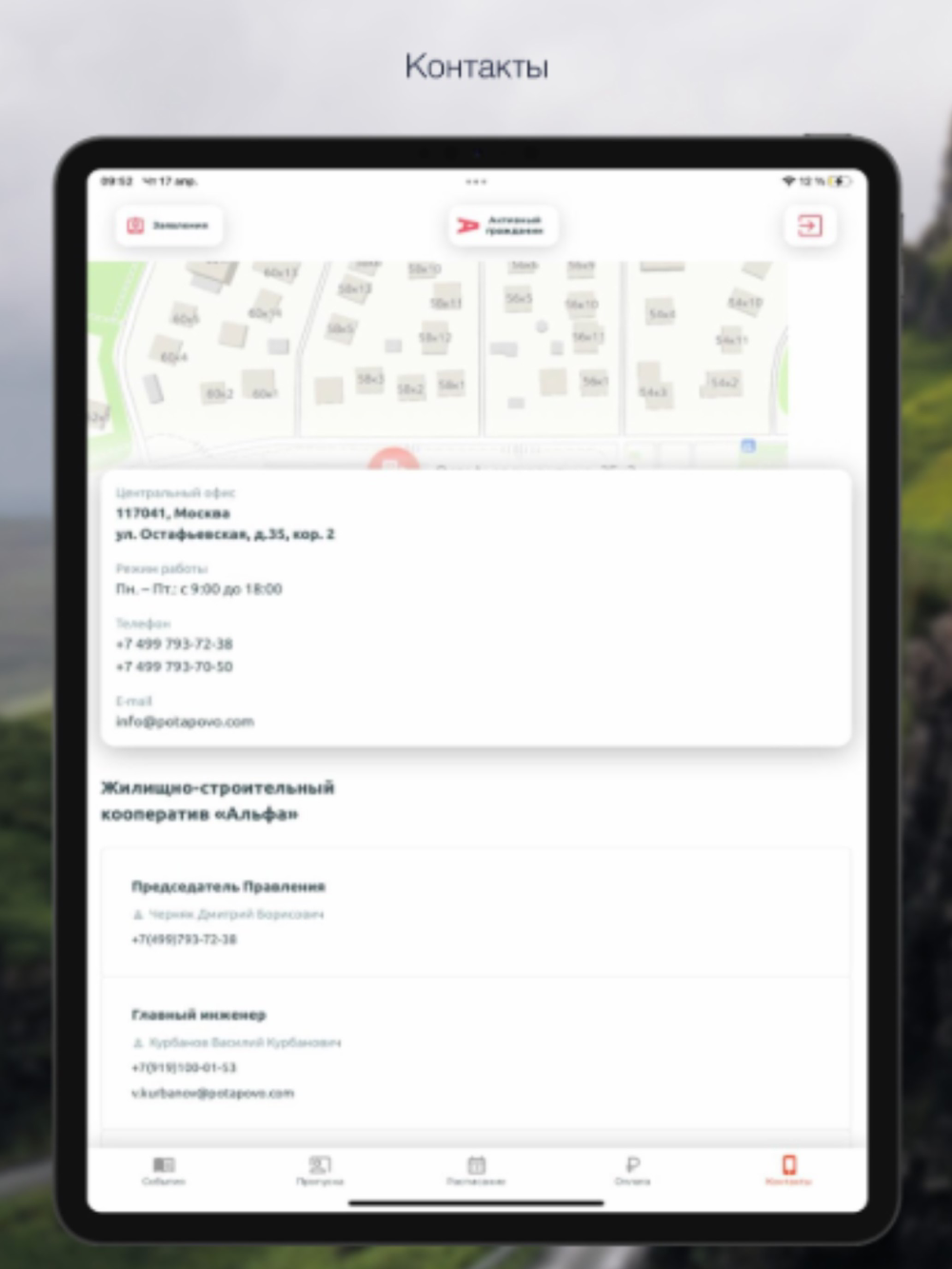 Мобильное приложение “Потапово” – это удобный и легкий доступ жителей к информационным ресурсам ЖСК «Альфа»: