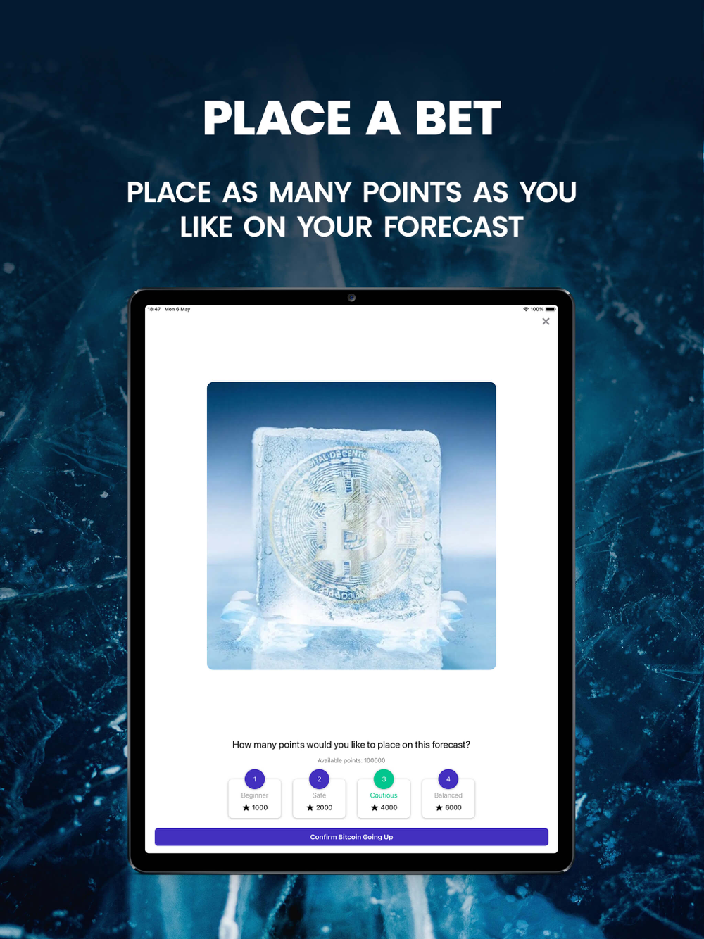 Are you ready for an exciting Bitcoin challenge? Dive into the dynamic world of cryptocurrencies and test your estimation skills! In this thrilling game, you predict whether the Bitcoin price will rise or fall in the next few minutes. If you're correct, the ice melts, bringing you closer to freeing a Bitcoin. Experience the volatility of the crypto market in a unique way and showcase your sense of finance and money.