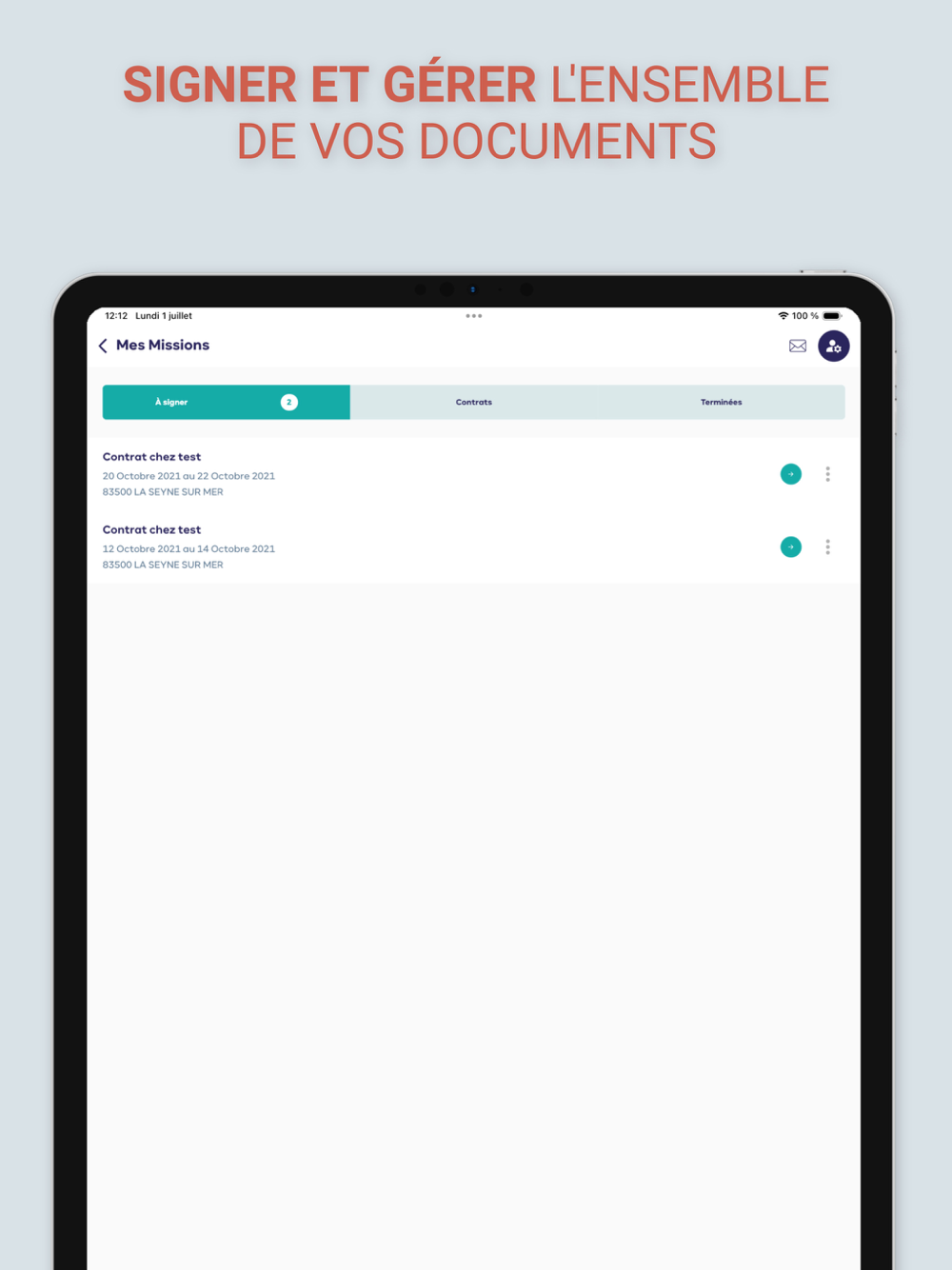 • Signer, gérer l'ensemble de votre dossier (contrats de missions, vos fiches de paies, …)