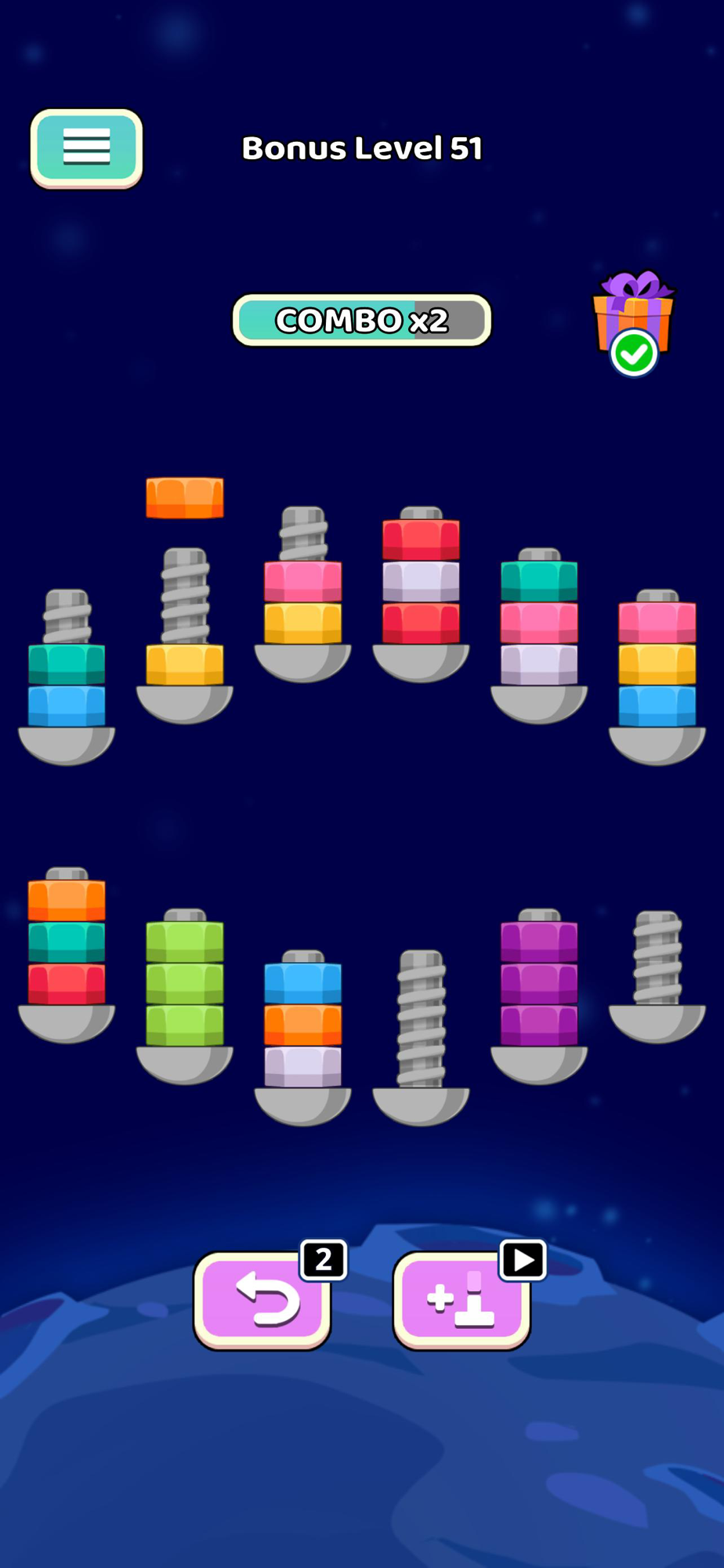 "Screw Sorting Quest" offers a captivating and immersive gameplay experience that puts players' precision and strategic thinking to the test. With its intuitive controls, challenging levels, and limited undo options, the game provides endless opportunities for players to hone their sorting skills and achieve mastery over the art of screw sorting.