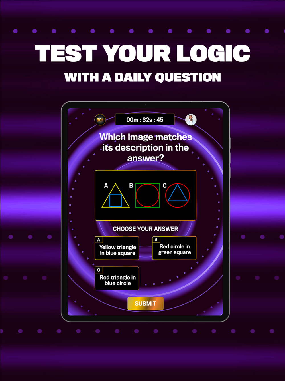 • Unique Trivia Challenges: Test yourself with fun, brain-teasing logic questions. It's not about general knowledge-it's about thinking differently!