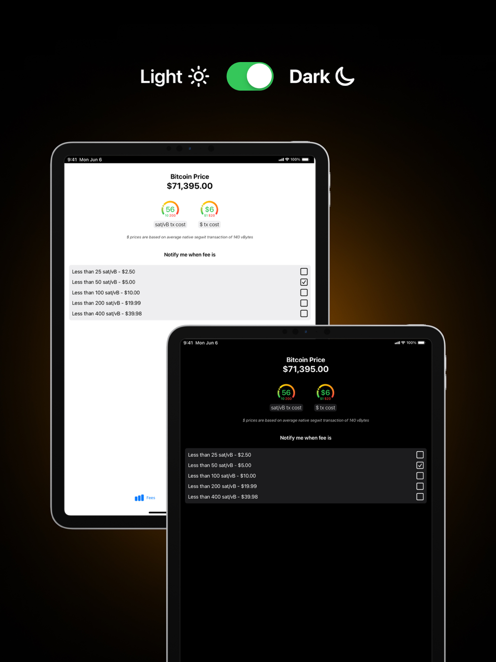 Be the first one to get notified about Bitcoin fees and start buying or selling Bitcoin at a lower price.