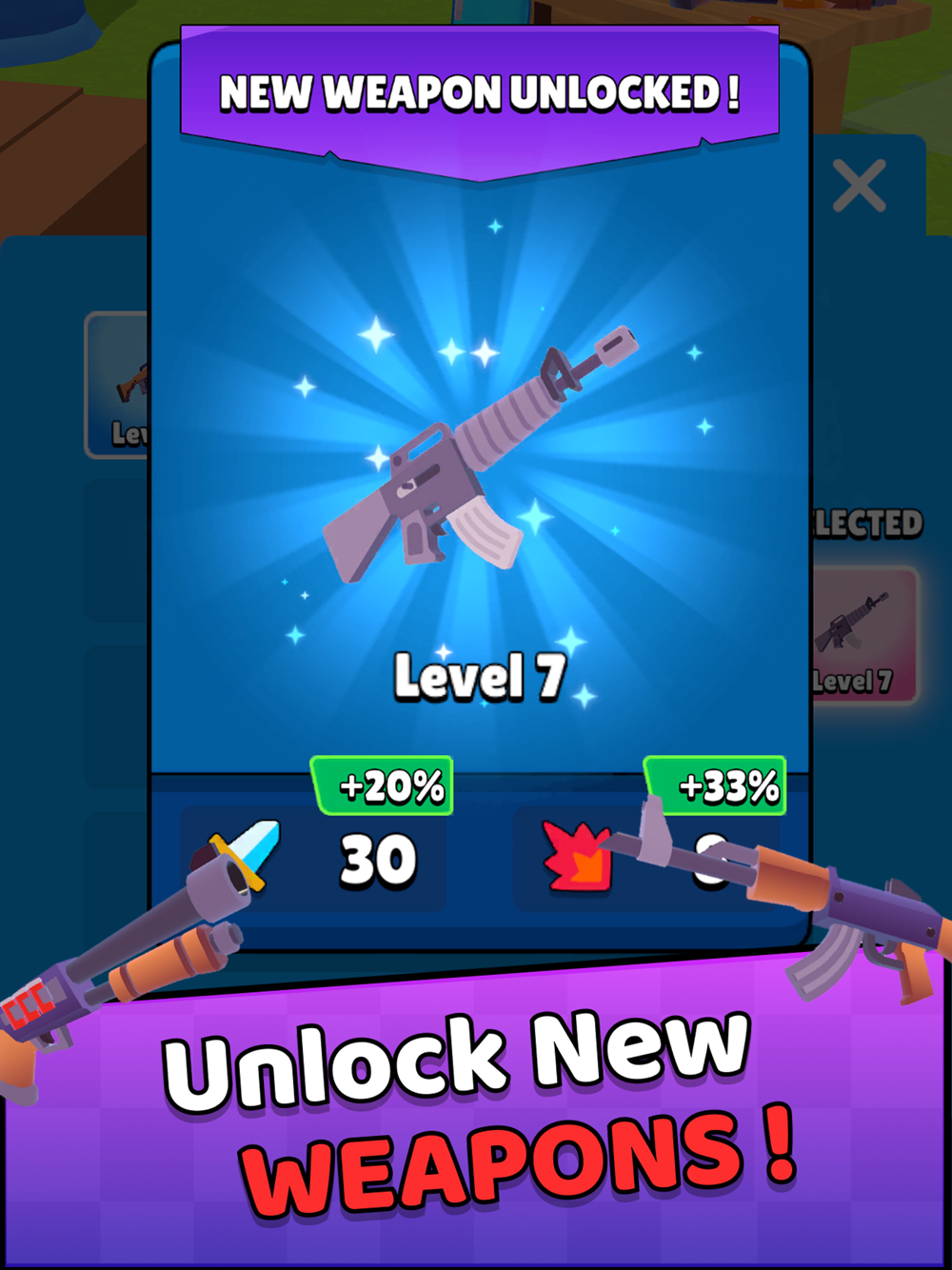 Brace yourself for the Zombie Apocalypse in Apocalypse Merge! Merge guns, defend your zone, and eliminate undead and foes in this heart-pounding survival adventure! Collect coins and powerful weapons during daring missions, then strategically use them to expand your safe zone and fortify your defenses. The innovative merging system allows you to combine guns, creating even deadlier weapons to face the ever-evolving challenges. Upgrade your skills and become humanity's last hope as you battle to save the world from the relentless horrors . Will you merge your way to victory and survive the Zombie Apocalypse?