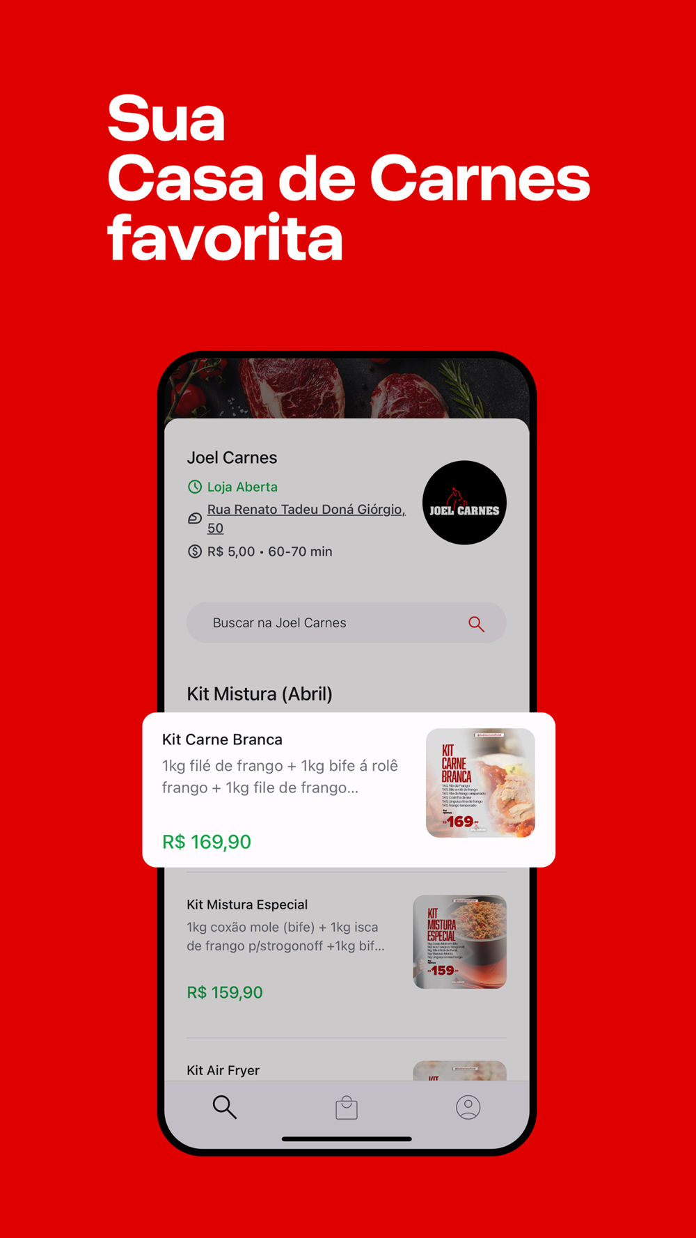 Introduzindo o novo delivery do Joel Carnes! Experimente fazer pedidos diretamente da ponta dos seus dedos com o nosso aplicativo de entrega perfeitamente integrado. Explore nosso menu, apresentando uma variedade com paixão e precisão. Com apenas alguns toques, faça seu pedido e deixe nossa equipe dedicada garantir uma entrega rápida e confiável no local desejado.