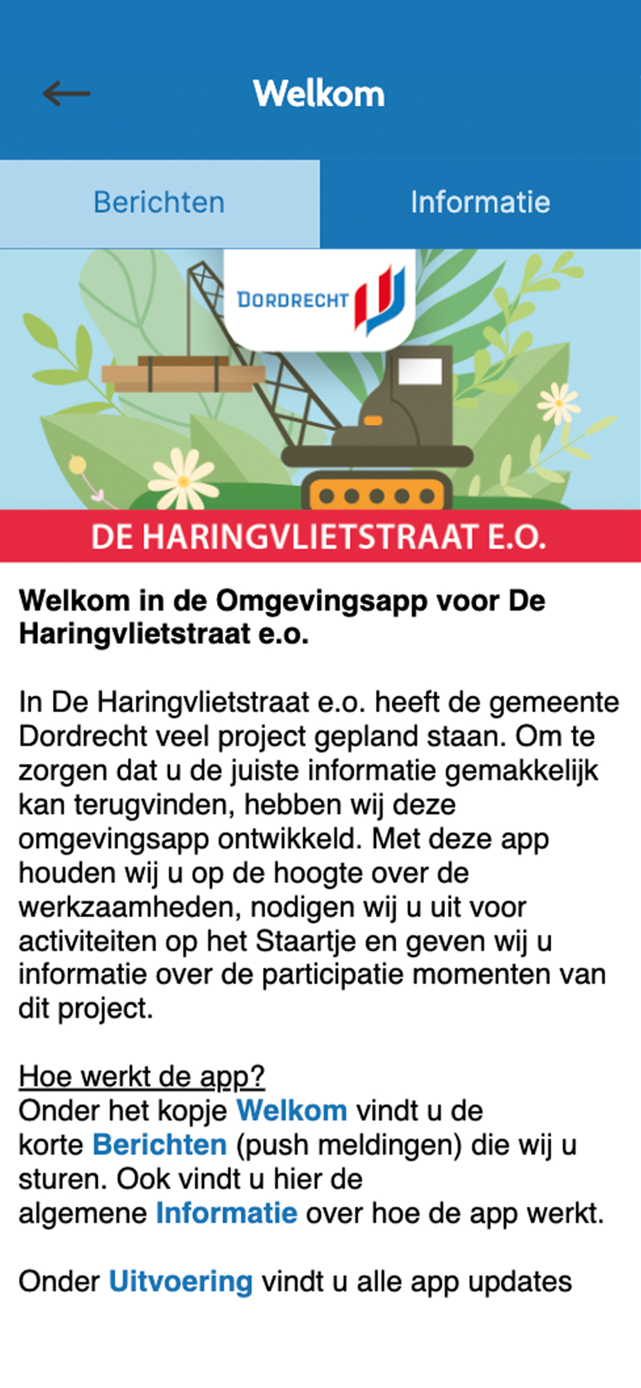 In deze app vindt u alle informatie over de werkzaamheden van De Haringvlietstraat e.o. te Dordrecht. Er worden relevante agenda puntjes, de laatste planning en contactinformatie weergegeven. Ook kunt u op deze app vragen, opmerkingen of klachten achterlaten die betrekking hebben op het project.