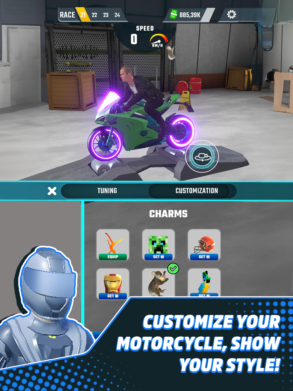 High-Speed Action: Hit the road and experience the rush of adrenaline as you compete in intense races and challenges at various locations around the world. Master the art of riding as you navigate through challenging courses, perfect your maneuvers, and outpace your opponents to claim victory.