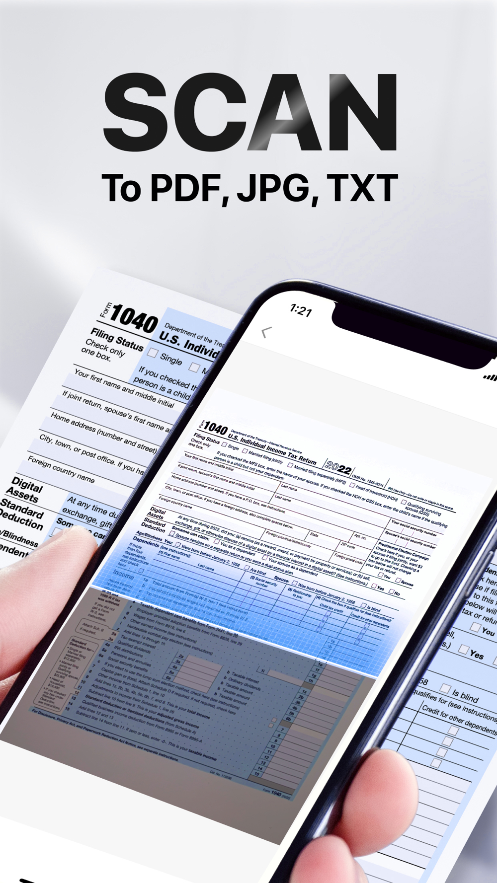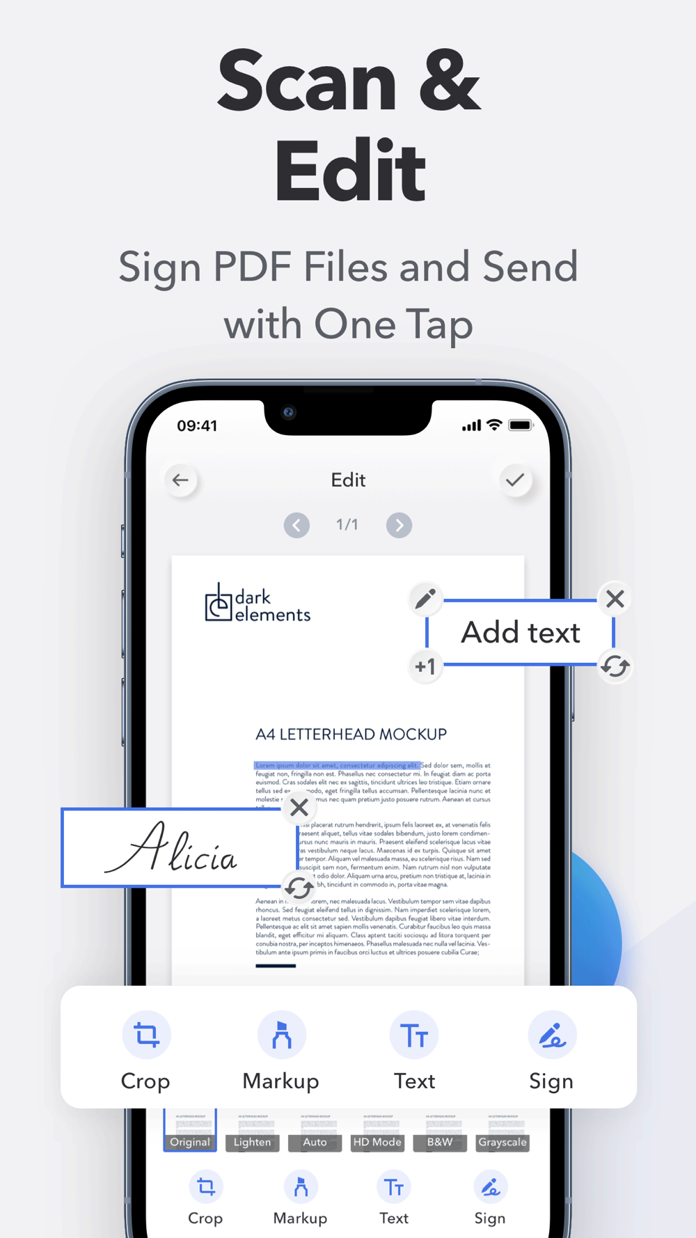 This scanner app will do the rest. It detects edges and converts photos to a searchable PDF document.