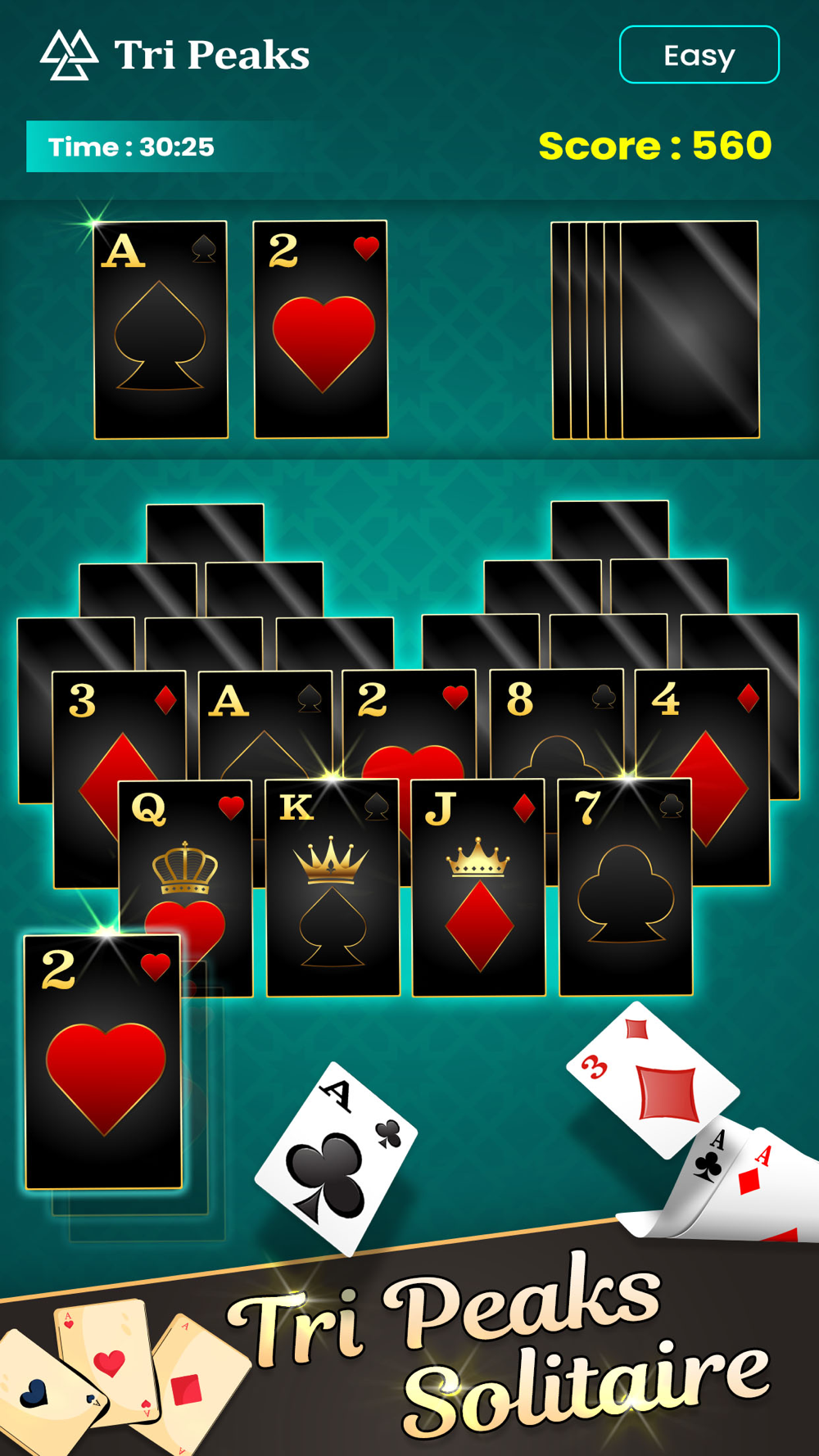 - Select cards in a sequence, earn combo points, and try to clear the board in TriPeaks Solitaire
