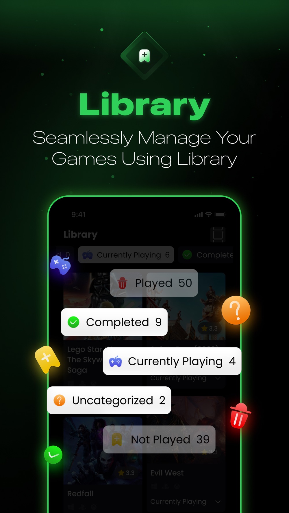 • Efficiently organize your games into categories like Played, Want, and Playing.